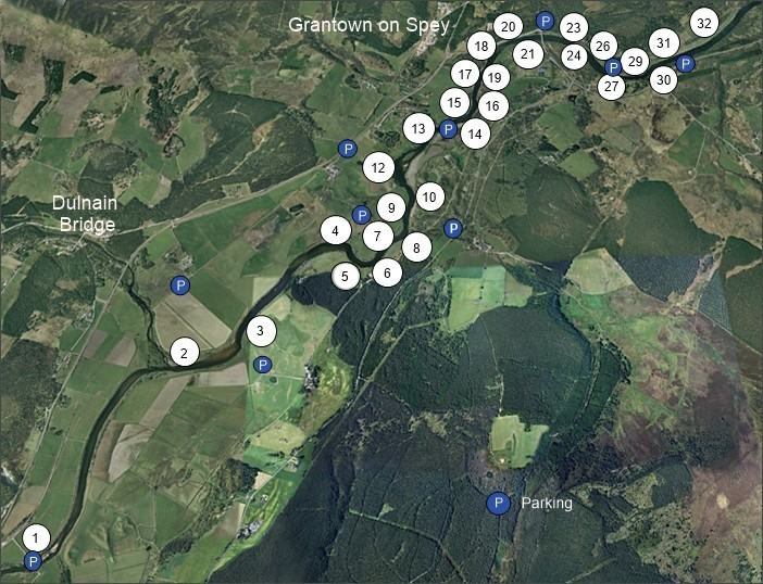 Broomhill Dulnain Mouth Poll Caich Poll Caich/Poll an Eilean The Saddle The Bushes Auchernack Burn Little Stream Upper and Lower Bends Tarric Mor Craggan Sands Poll Scriodan Poll a Clachan Poll Clach Poll Clachan Lios Finnock Pool Macleod's Pool Poll a Cearan Polnagour Clach na Strone Big Stream Bridge Pool The Lurg Bun a Bhord The Long Pool Slop Thomas Balliefurth Clach an Uaran