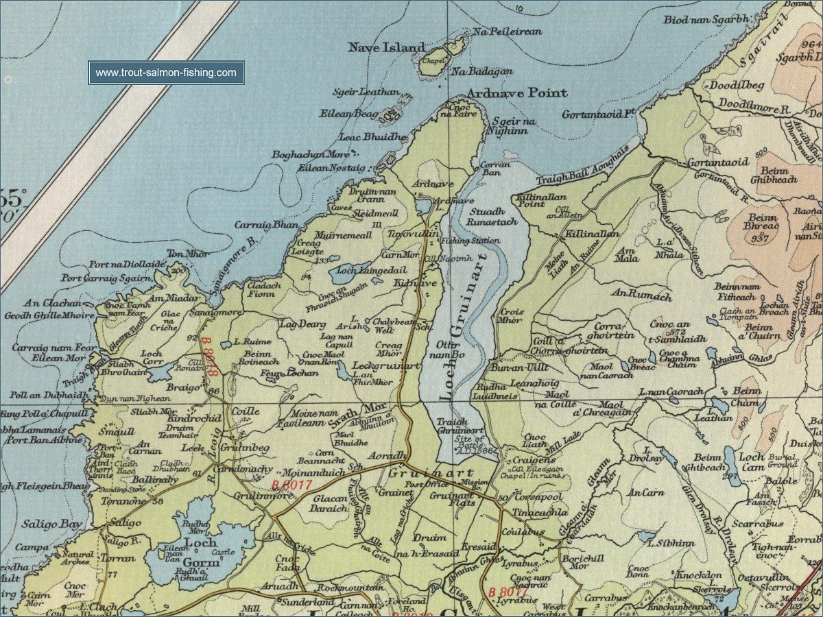The table below lists a few of the main trout lochs on North Islay with location maps