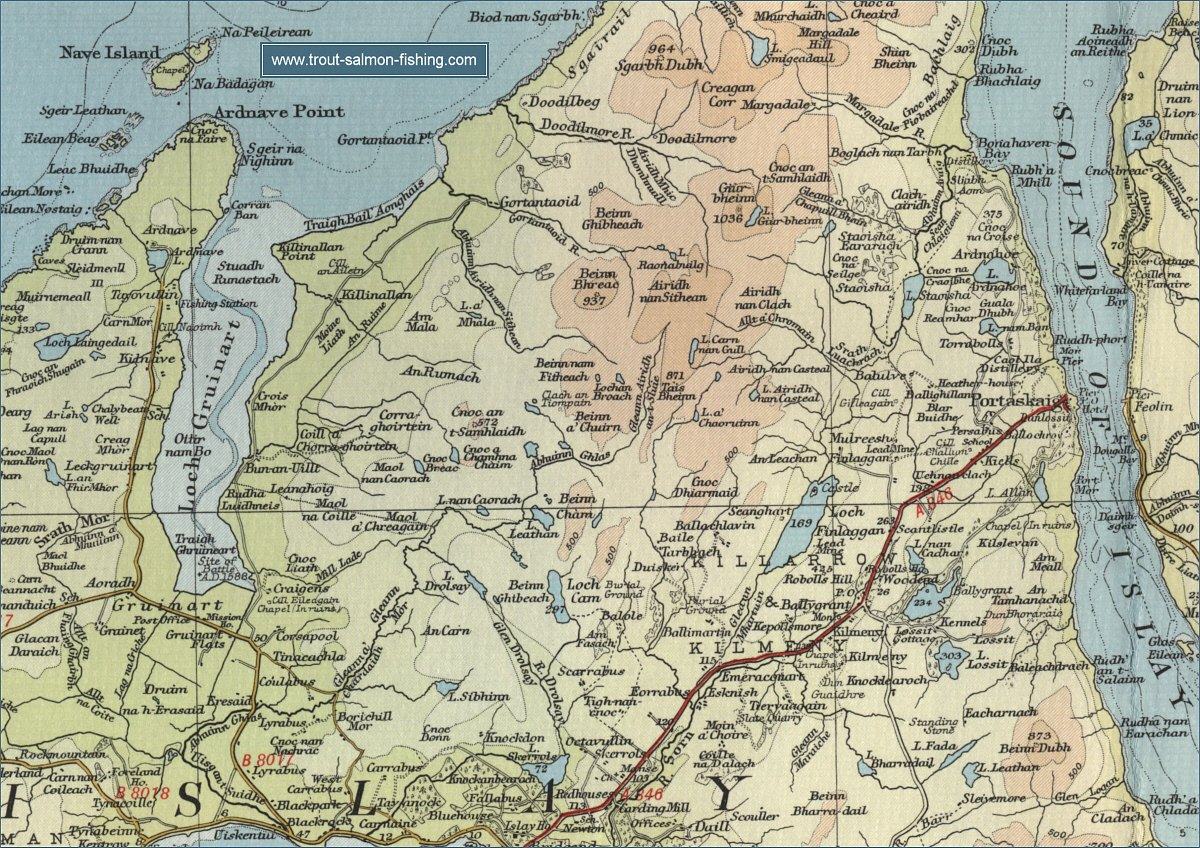 The table below lists a few of the main trout lochs on south Islay with location maps