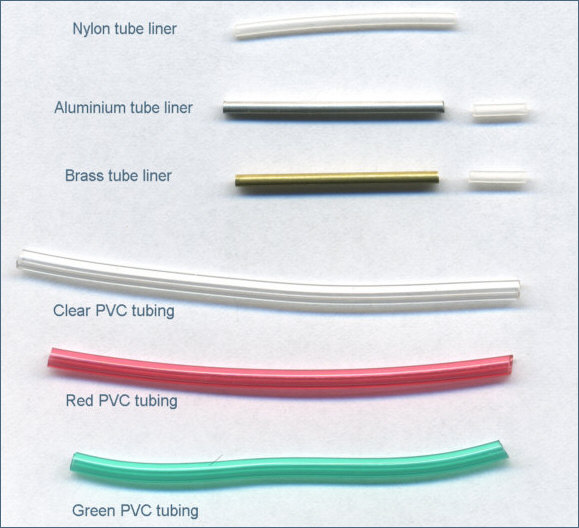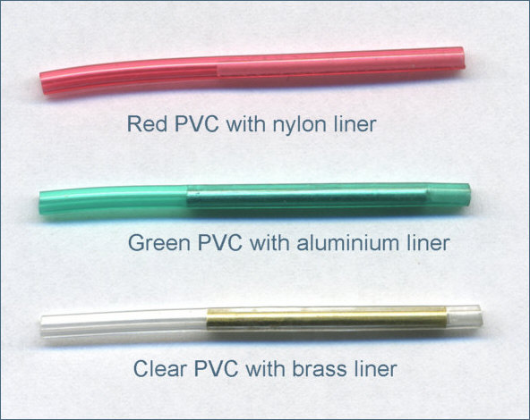 of nylon liner, secured with a drop of superglue, at the head of metal lined tubes to shield the nylon