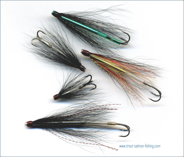 flies, both for sea trout and salmon fishing, of varying size and weight, and